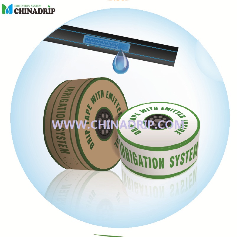 Cinta de goteo Chinadrip con emisores planos en el interior, 16 mm de diámetro, espesor de 0,2 mm a 0,6 mm, espaciado de 10 cm a 90 cm, con caudal de 1,4 L/H, 2,0 L/H y 3,0 L/H, fabricada con material de alta calidad y Tecnología avanzada, mejor para anticorrosión y antienvejecimiento, CV superior y excelente uniformidad. Con nuevo tipo de pasajes laberínticos, excelente resistencia a la obstrucción. Excelente reducción de presión, mayor longitud de colocación. Extruido con emisor en el interior, liviano y empacado en rollo, bueno para el transporte. El emisor está diseñado para resistir la obstrucción con un recorrido de flujo de gran tamaño que tiene la sección transversal más grande de la industria en todo el mundo.