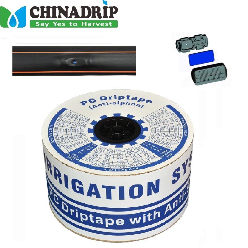 • Cinta de goteo PC100 (línea de goteo) producida por extrusión con emisor de PC directamente en el interior, lo que ahorra tiempo de instalación.