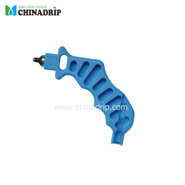 Para usar el punzón simple, sostenga el tubo de polietileno con una mano. Sostenga el punzón con la mano libre y úselo para aplicar presión al tubo de polietileno. Al mismo tiempo, gire el punzón hacia adelante y hacia atrás creando un agarre en el tubo de polietileno.