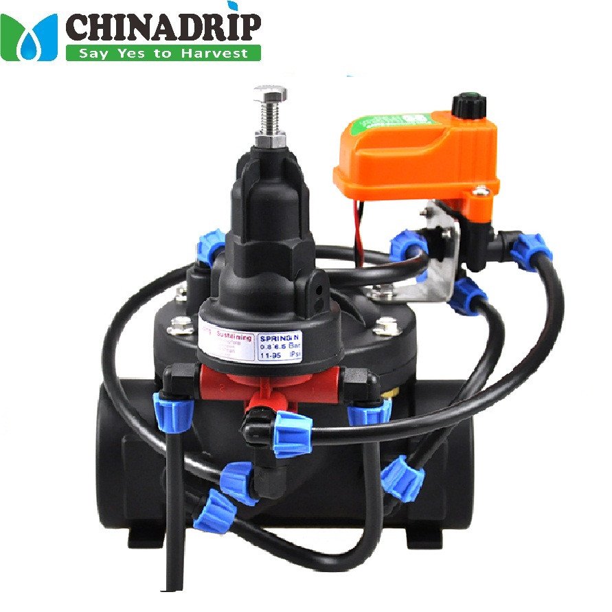Esta válvula controlada por solenoide con solenoide CHINADRIP Plus de 3 vías es una válvula de control accionada por diafragma operada hidráulicamente con circuito de control hidráulico interno de alimentación y purga. El Solenoide Plus permite apertura, cierre manual o control automático mediante señal eléctrica.